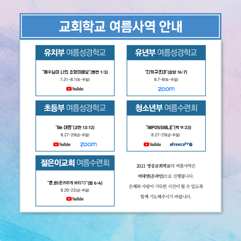 • 교회학교 여름사역 안내