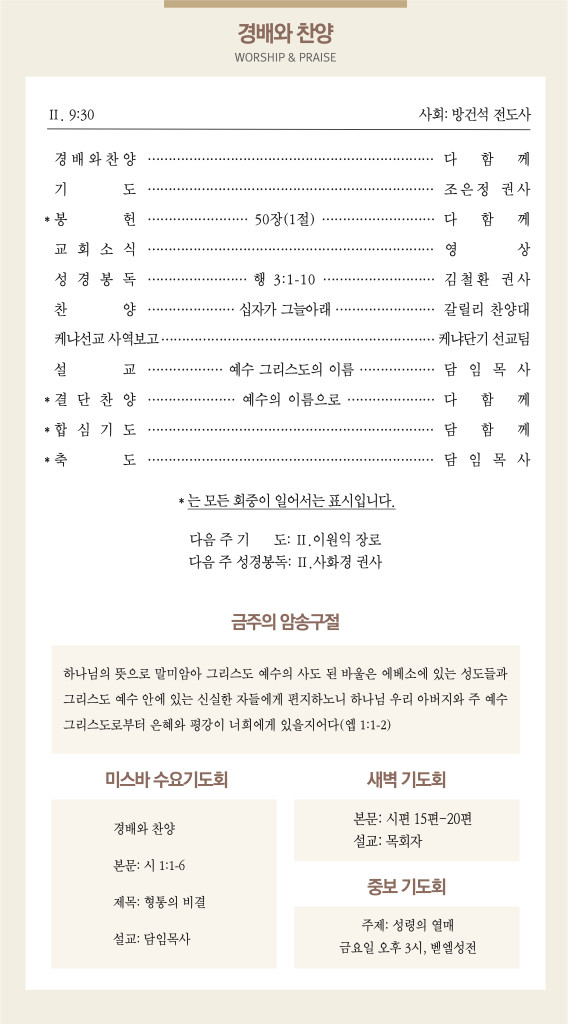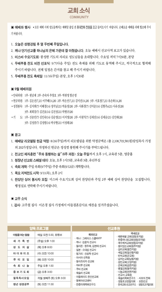 250831 주일예배 순서 및 소식