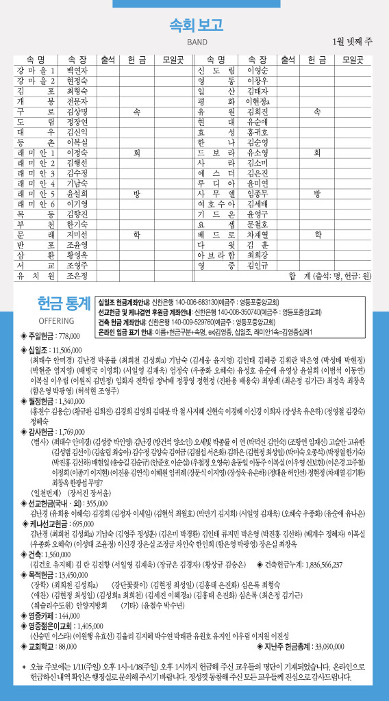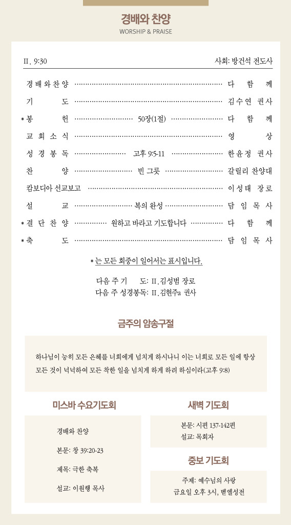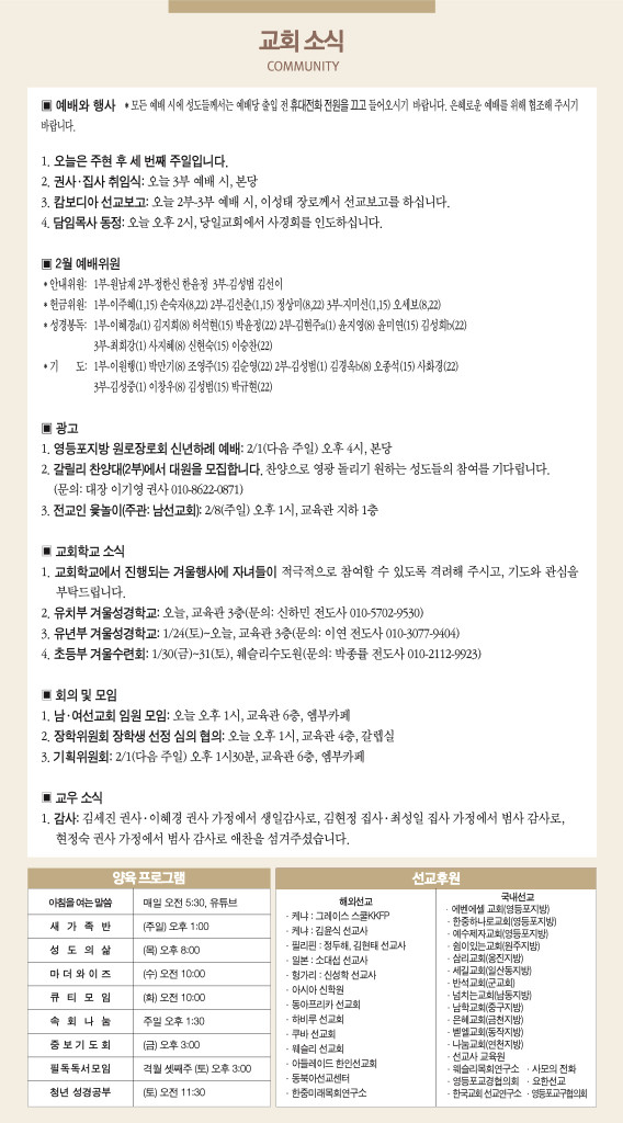 260125 주일예배 순서 및 소식