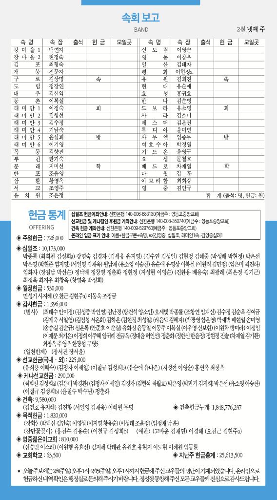 260222 주일예배 순서 및 소식