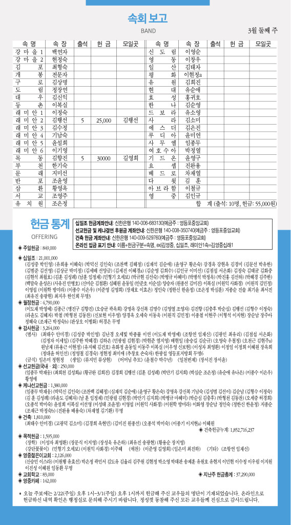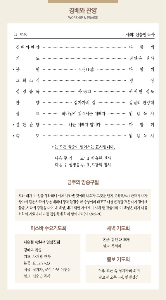 260308 주일예배 순서 및 소식