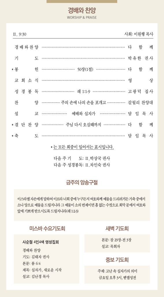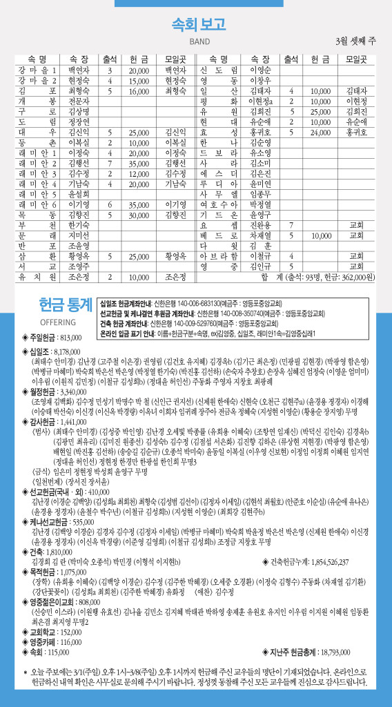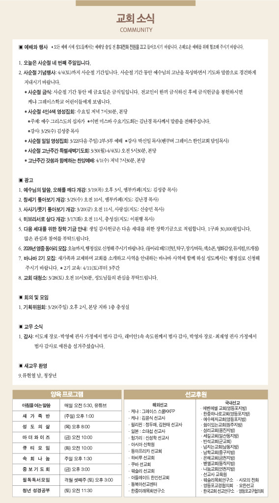 260315 주일예배 순서 및 소식
