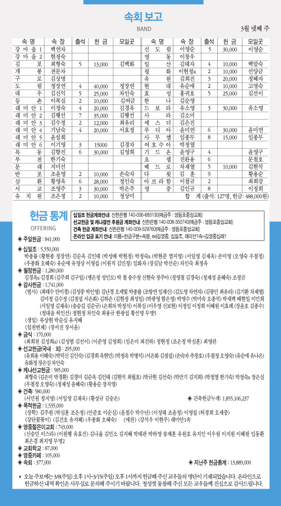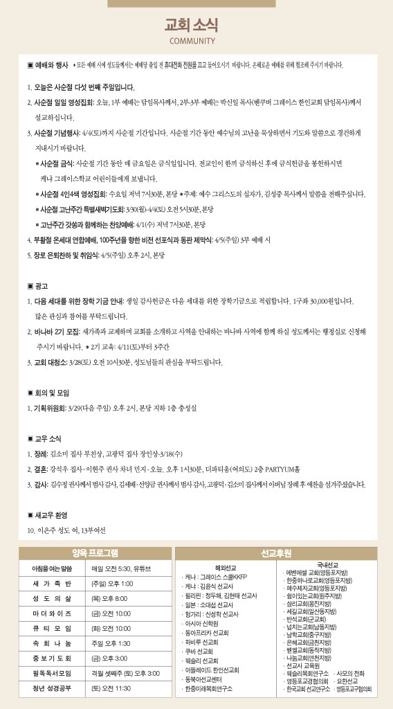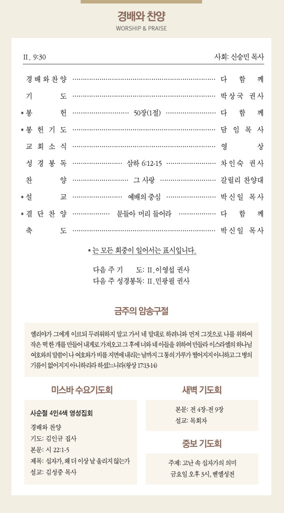 260322 주일예배 순서 및 소식